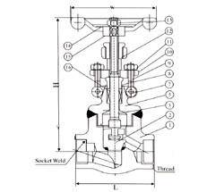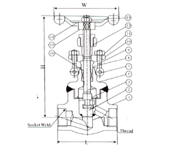截止閥的設計與制造符合 APl602,BS53 52和ASME B16.34。檢驗與測試按APl598,標記按MSS-SP-25。